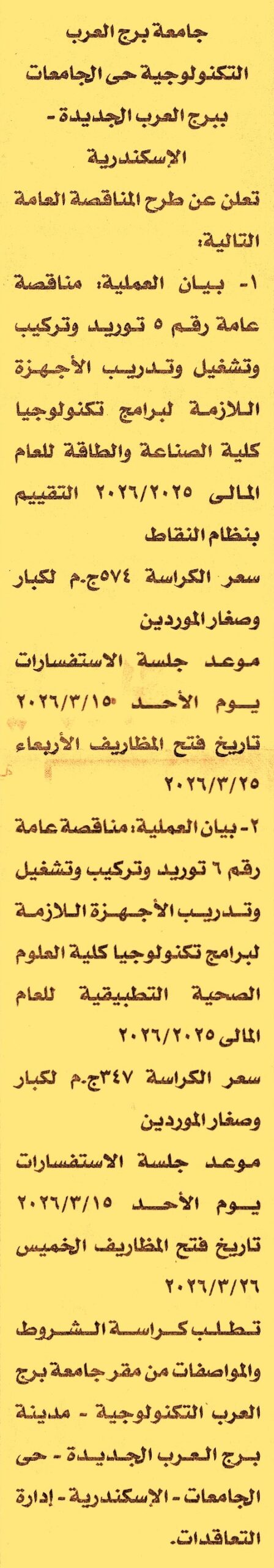 توريد وتركيب وتشغيل وتدريب الأجهزة اللازمة لبرامج تكنولوجيا كلية الصناعة الطاقة
