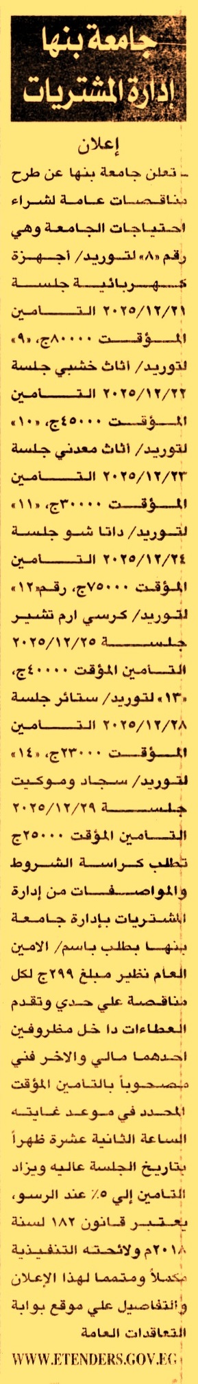 HOT Information مناقصة عامة رقم 8 لعملية توريد أجهزة كهربائية عن جريدة الجمهورية Post navigation شركة جنوب الدلتا لتوزيع الكهرباء جامعة أسوان