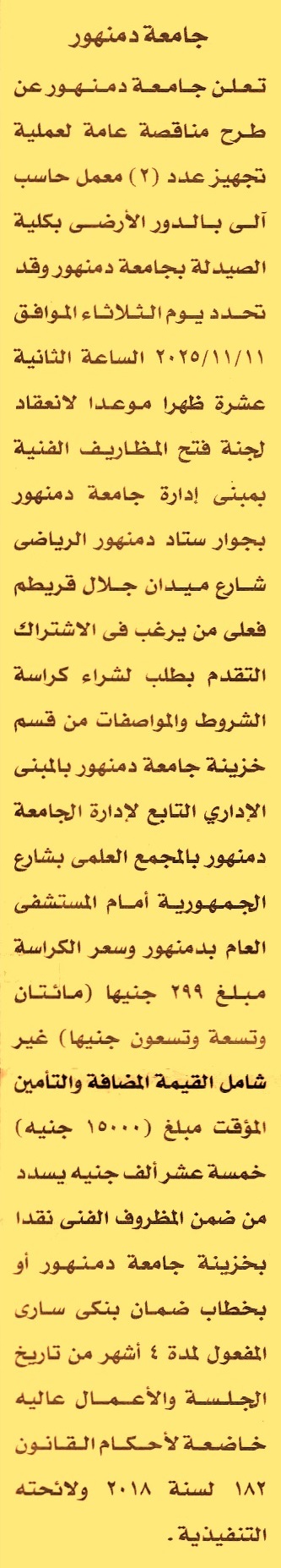 تجهيز عدد 2 معمل حاسب ألي بالدور الأرضي بكلية الصيدلة بالجامعة
