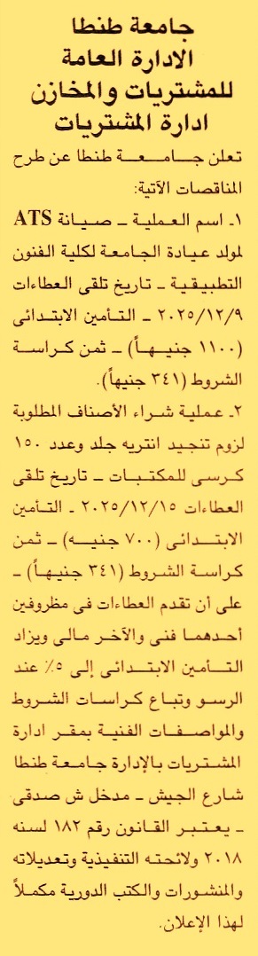 HOT Information مناقصة عامة لعملية صيانة ATS لمولد عيادة الجامعة لكلية الفنون التطبيقية عن جريدة الجمهورية Post navigation جامعة أسوان مركز شباب القيس