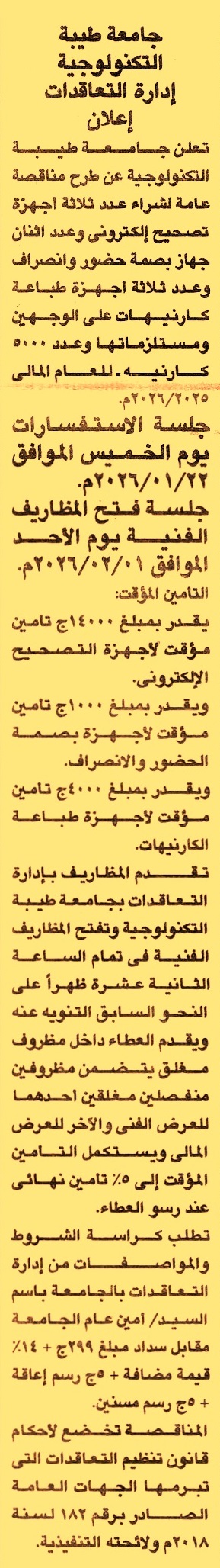 (جلسة الاستفسارات يوم 22/1/2026)