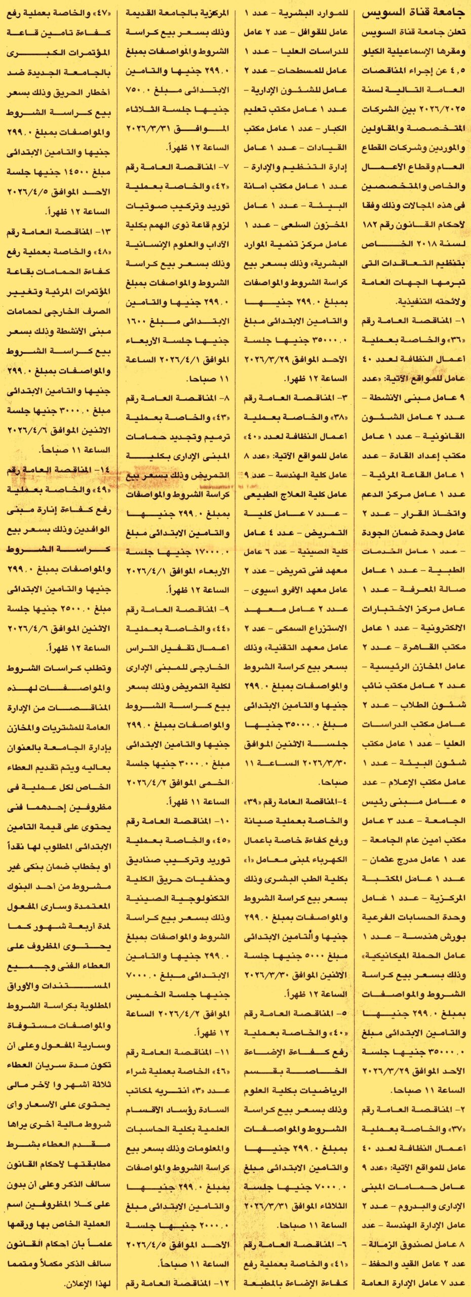 مناقصة عامة رقم 36/2025/2026 لعملية