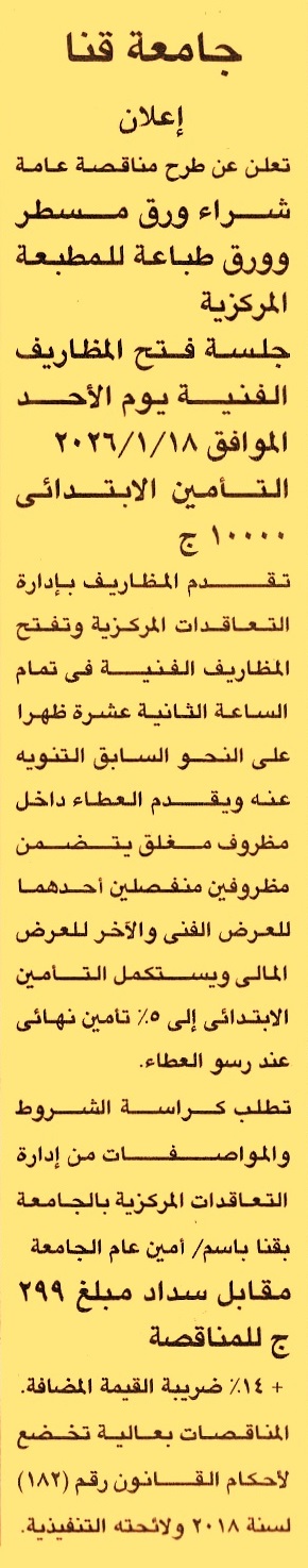HOT information مناقصة عامة لعملية توريد ورق مسطر وورق طباعة للمطبعة المركزية عن جريدة الجمهورية Post navigation شركة السهام البترولية جامعة الأزهر مستشفى الحسين الجامعي