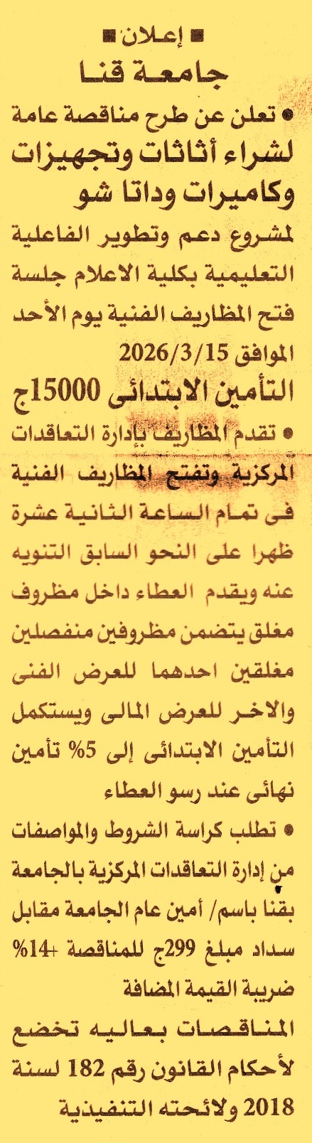 توريد أثاثات وتجهيزات وكاميرات وداتا شو