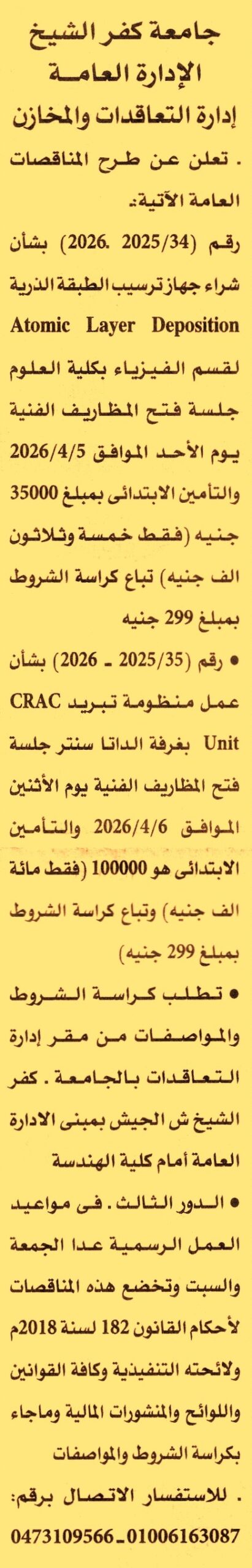 مناقصة عامة رقم 34/2025/2026 لعملية
