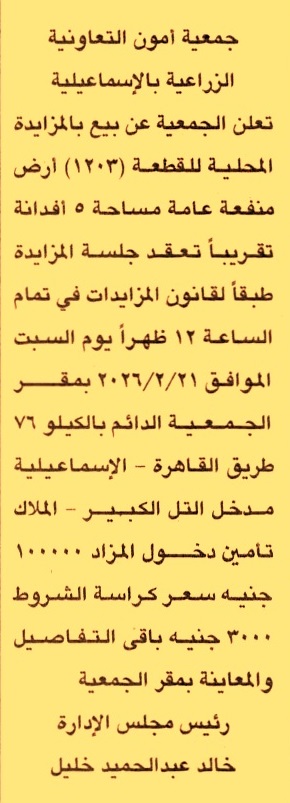 HOT information مزايدة محلية عامة لعملية بيع قطعة رقم 1203 أرض منفعة عامة بمساحة 5 أفدنة تقريبا عن جريدة الجمهورية Post navigation مركز شباب مدينة قنا الوحدة المحلية لمركز ومدينة ساقلتة