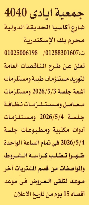 HOT Information مناقصة عامة لعملية توريد مستلزمات طبية ومستلزمات أشعة (تقدم العروض في موعد أقصاه 15 يوم من تاريخ الإعلان) عن جريدة الأهرام Post navigation الشركة المصرية للمطارات مديرية الصحة بالقليوبية