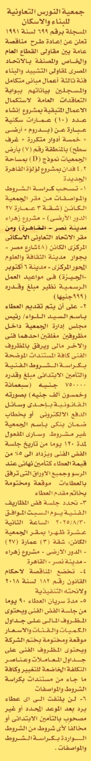 ومدة سريان العطاءات 3 أشهر)