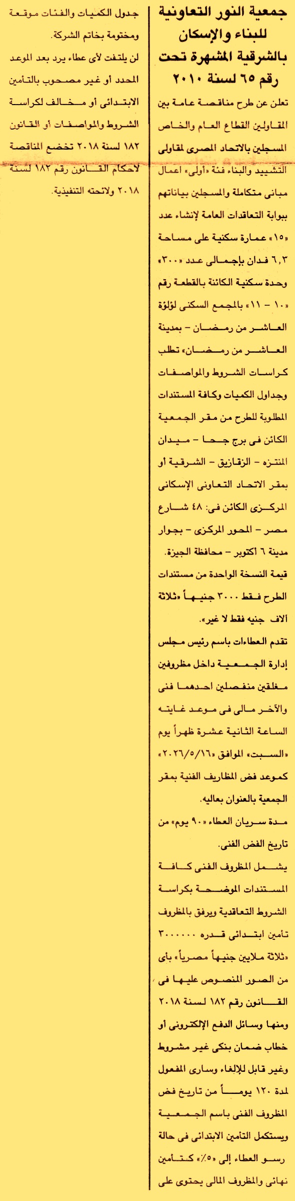 إنشاء عدد 15 عمارة سكنية على مساحة 6.3 فدان بإجمالي عدد 300 وحدة سكنية