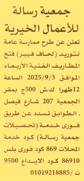 HOT Information ممارسة عامة لعملية توريد لحاف فيبر (يسدد التأمين عن طريق فوري خدمة تحصيلات جمعية رسالة كود خدمة المحلات 869 كود خدمة فوري بلس 86910 كود التوريد 9500 وأخر موعد لتقديم العينات يوم 17/7/2025) عن جريدة الأهرام Post navigation مستشفيات جامعة عين شمس الادارة المركزية لشئون محطات البحوث والتجارب الزراعية
