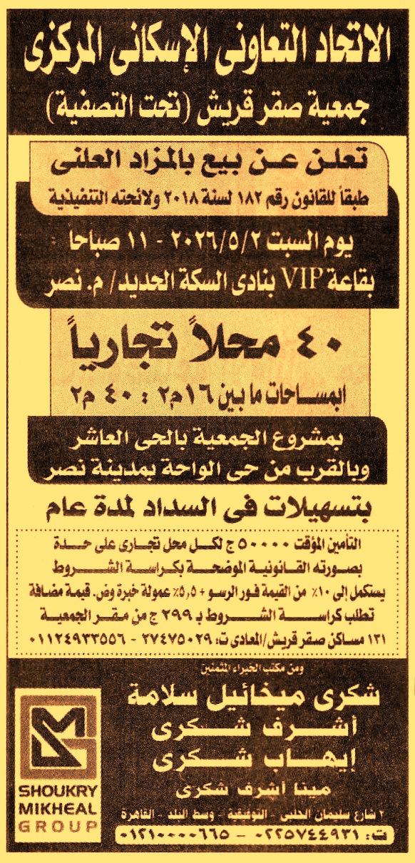 بيع 40 محل تجاري بمساحات ما بين 16م2 إلى 40م2