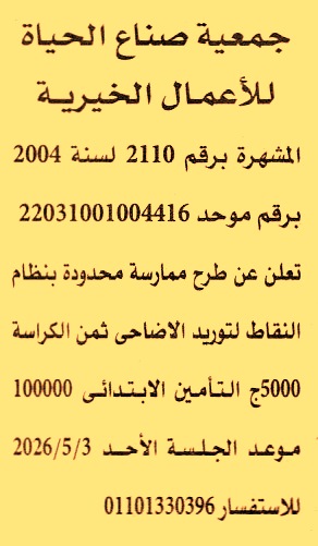 HOT Information ممارسة محدودة لعملية توريد الأضاحي (العملية بنظام النقاط) عن جريدة الأهرام Post navigation محكمة القاهرة الجديدة الابتدائية مؤسسة شفاء الأورمان