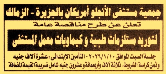 توريد مستلزمات طبية وكيماويات معمل المستشفى