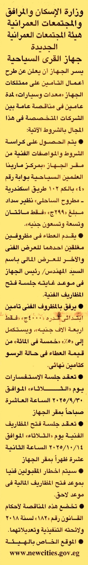 تنفيذ أعمال التأمين على ممتلكات الجهاز “معدات وسيارات” لمدة عامين
