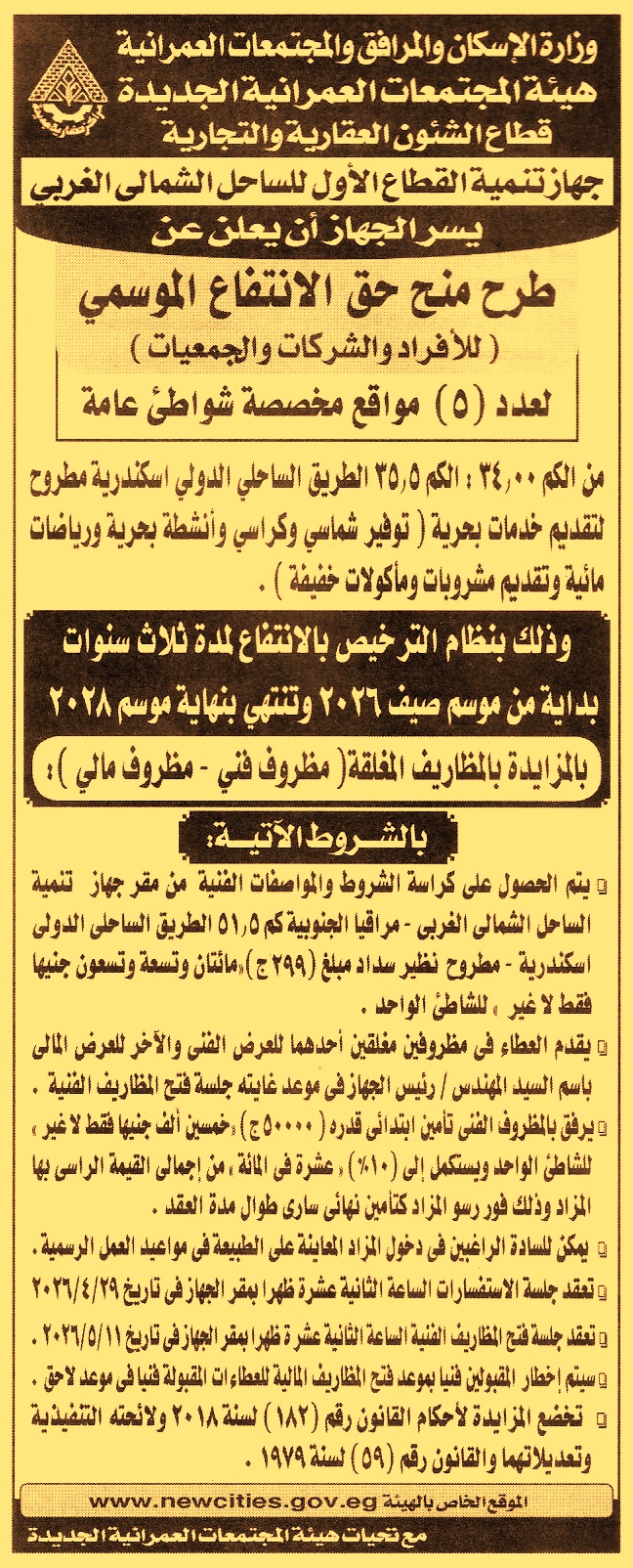 حق الانتفاع الموسمي لعدد 5 موقع مخصصة شواطئ عامة