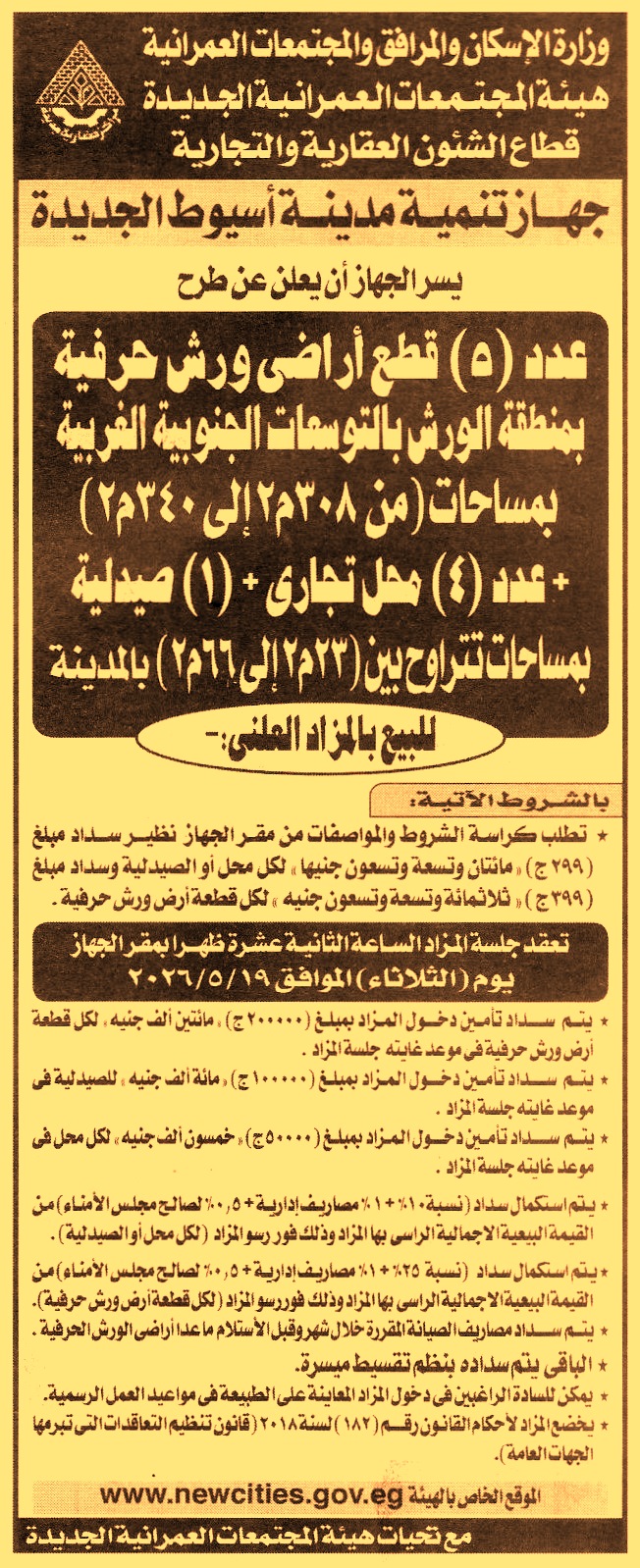 بيع عدد 5 قطعة أراضي ورش حرفية بمنطقة الورش بالتوسعات الجنوبية الغربية
