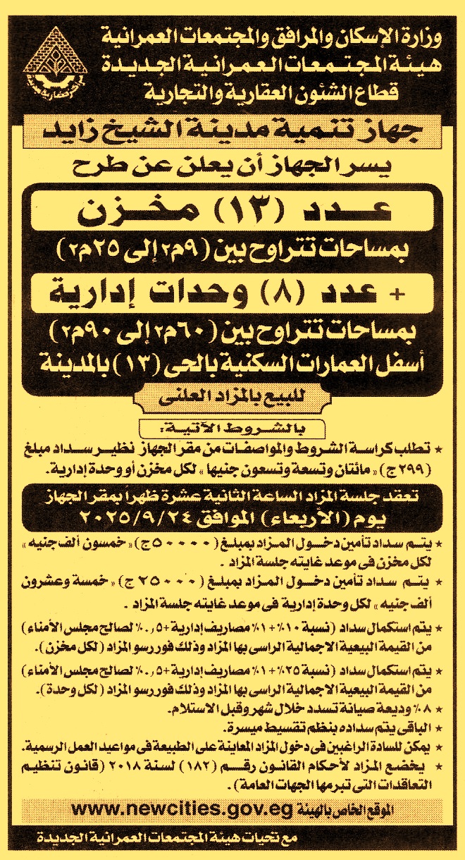 بيع عدد 13 مخزن بمساحات تتراوح بين 9م2 إلى 25م2