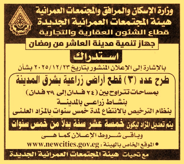 يعلن الجهاز عن تعديل بخصوص مزايدة علنية لعملية