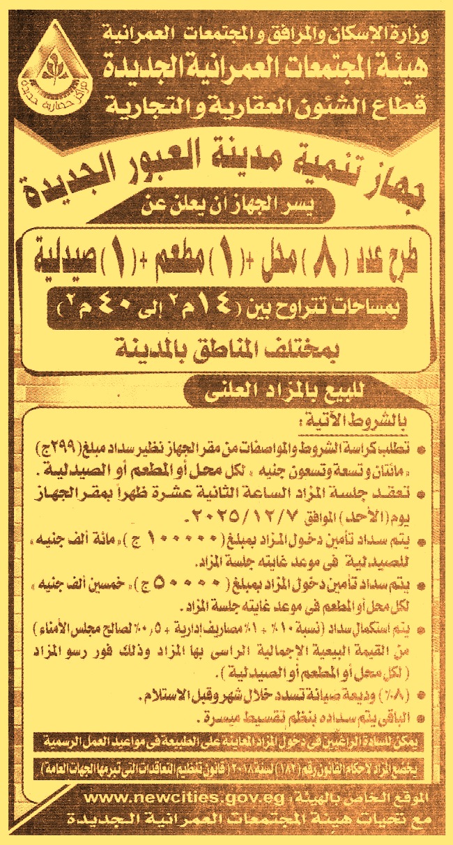 بيع عدد 8 محل تجاري وعدد 1 مطعم وعدد 1 صيدلية
