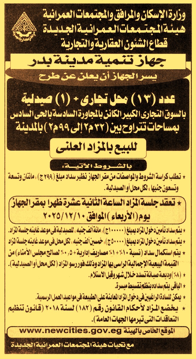 بيع عدد 13 محل وعدد 1 صيدلية