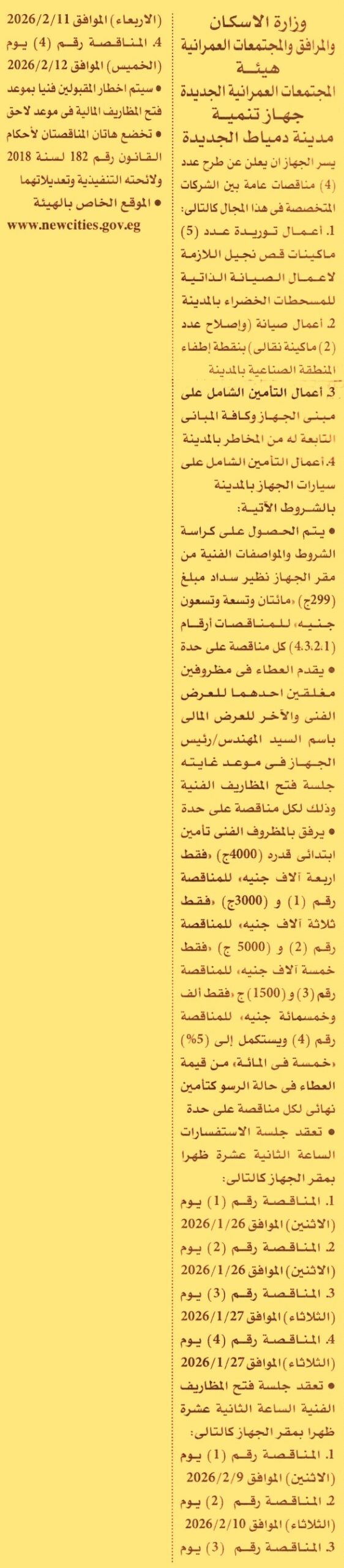 (جلسة الاستفسارات يوم 26/1/2026)