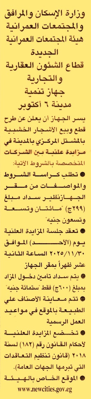 HOT Information مزايدة علنية لعملية قطع وبيع الأشجار الخشبية بالمشتل المركزي بالمدينة عن جريدة الجمهورية Post navigation نادي التوفيقية للتنس مديرية الأقصر التعليمية