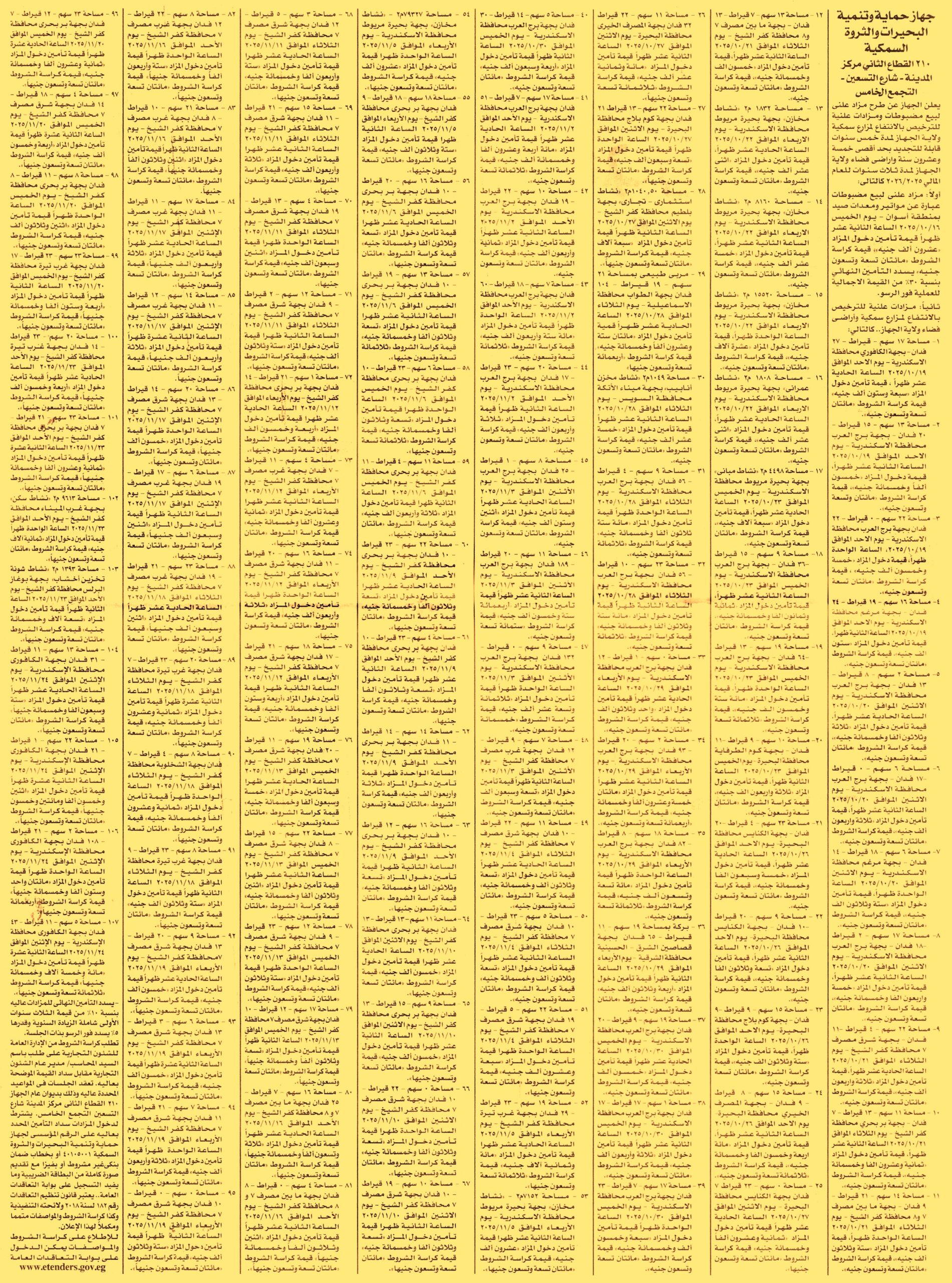 HOT information مزايدة علنية لعملية حق الإنتفاع لمساحة 17س 27ف بجهة الكافوري – محافظة الإسكندرية لمدة 3 سنوات بزيادة 5% سنويا عن جريدة الأخبار Post navigation شركة تكنولوجيا معلومات النقل شركة مصر للطيران للخدمات الأرضية