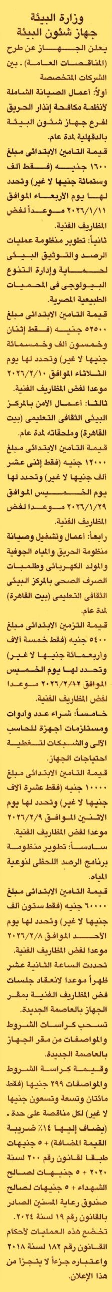 HOT Information مناقصة عامة لعملية تنفيذ أعمال الصيانة الشاملة لأنظمة مكافحة إنذار الحريق لفرع الجهاز بالدقهلية لمدة عام عن جريدة الجمهورية Post navigation جهاز تنمية مدينة حدائق أكتوبر وزارة الشباب والرياضة