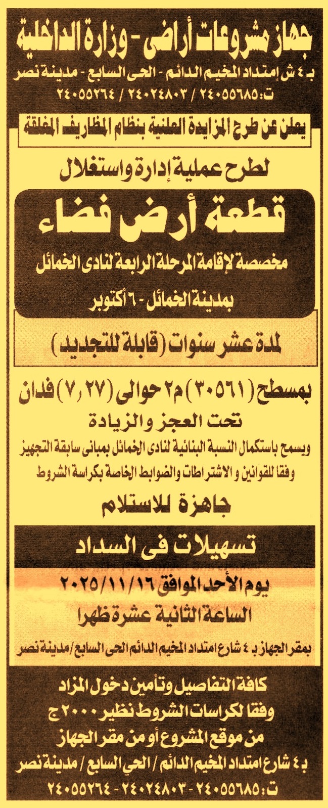 مخصصة لإقامة المرحلة الرابعة لنادي الخمائل – مدينة الخمائل – 6 أكتوبر