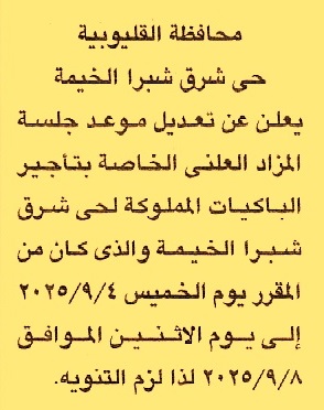 يعلن الحي عن تأجيل جلسة المزايدة العلنية لعملية