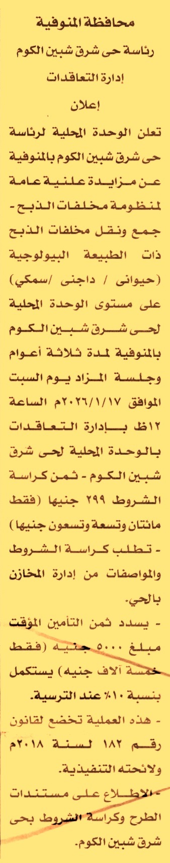 جمع ونقل مخلفات الذبح ذات الطبيعية البيولوجية “حيواني, داجني, سمكي”