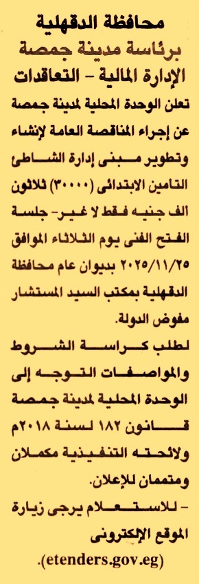 HOT Information مناقصة عامة لعملية إنشاء وتطوير مبنى إدارة الشاطئ عن جريدة الجمهورية Post navigation وزارة الصحة والسكان الهيئة المصرية العامة للمعارض والمؤتمرات