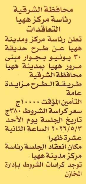 تأجير حديقة 30 يونيو بجوار مبنى مرور ههيا