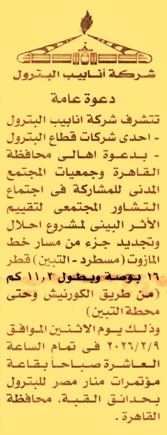 تتشرف الشركة بدعوة أهالي محافظة القاهرة وجمعيات المجتمع المدنية