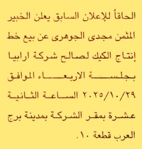 تعلن الشركة عن تأجيل جلسة المزايدة العامة لعملية