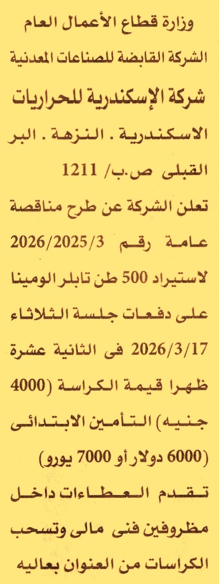 مناقصة عامة رقم 3/2025/2026 لعملية