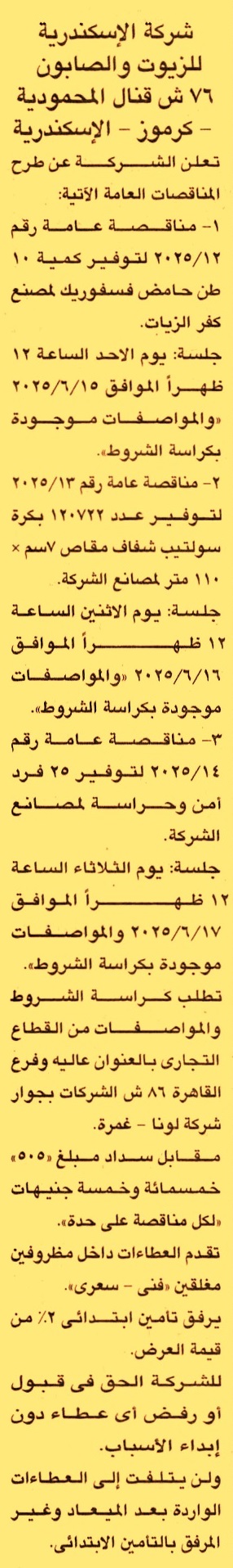 مناقصة عامة رقم 12/2025 لعملية