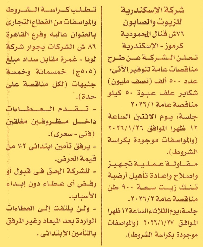 مناقصة عامة رقم 1/2026 لعملية
