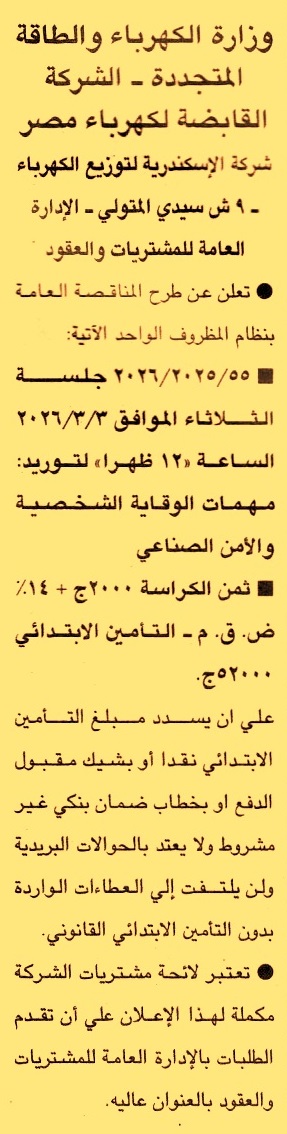HOT Information ممارسة عامة رقم 55/2025/2026 لعملية توريد مهمات الوقاية الشخصية والأمن الصناعي عن جريدة الجمهورية Post navigation الجمعية التعاونية المشتركة للإصلاح الزراعي بأبيس