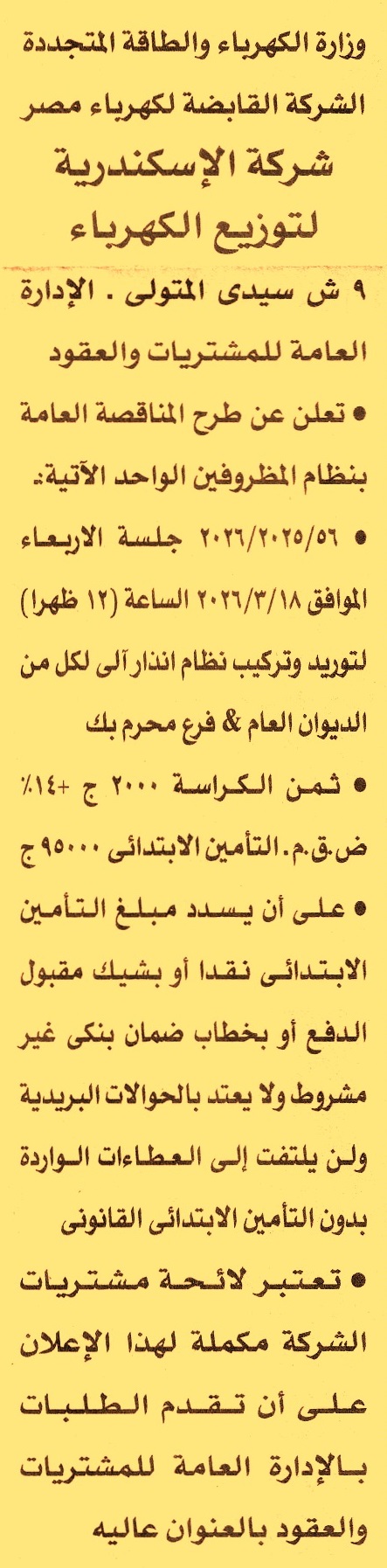 HOT Information ممارسة عامة رقم 56/2025/2026 لعملية توريد وتركيب نظام انذار ألي لكل من الديوان العام وفرع محرم بك عن جريدة الأهرام Post navigation المعهد القومي للأورام محكمة حلوان الإبتدائية