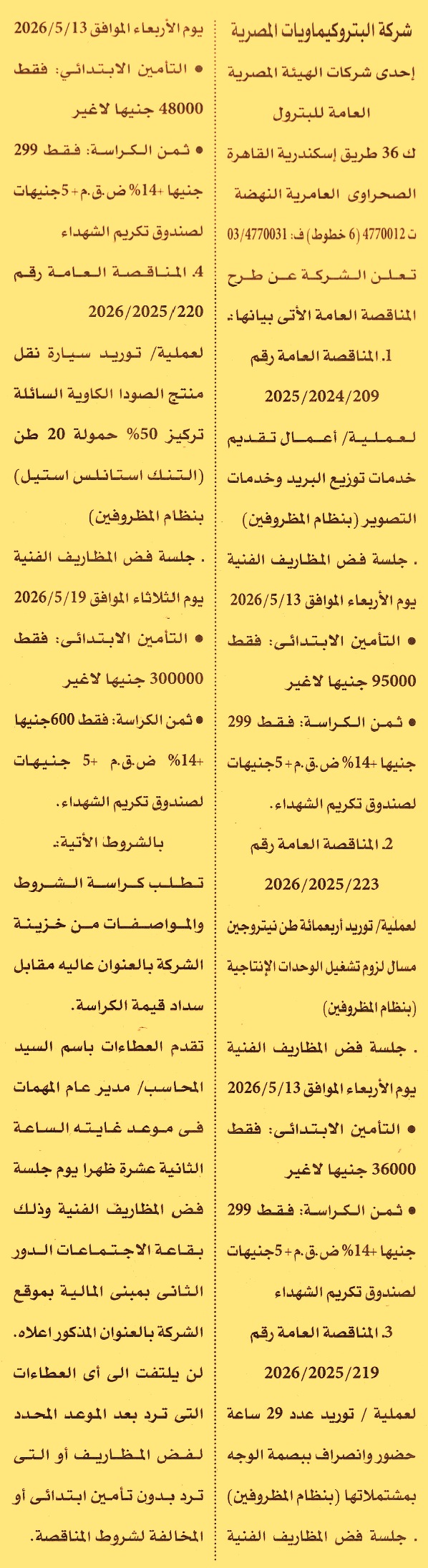 مناقصة عامة رقم 209/2025/2026 لعملية