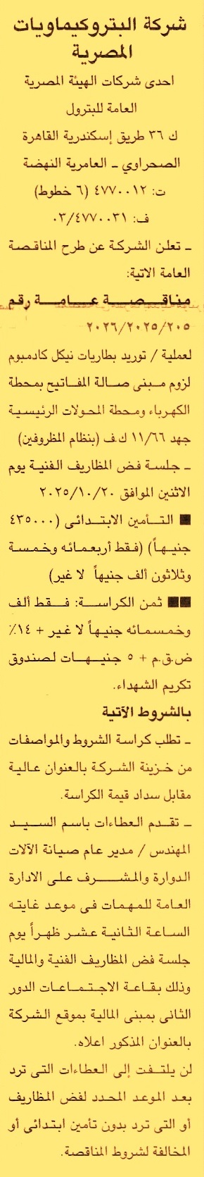 مناقصة عامة رقم 205/2025/2026 لعملية
