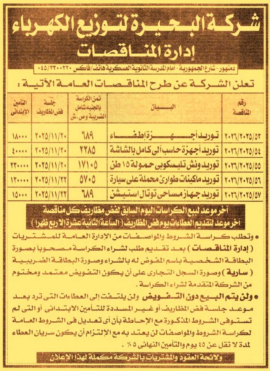 مناقصة عامة رقم 53/2025/2026 لعملية