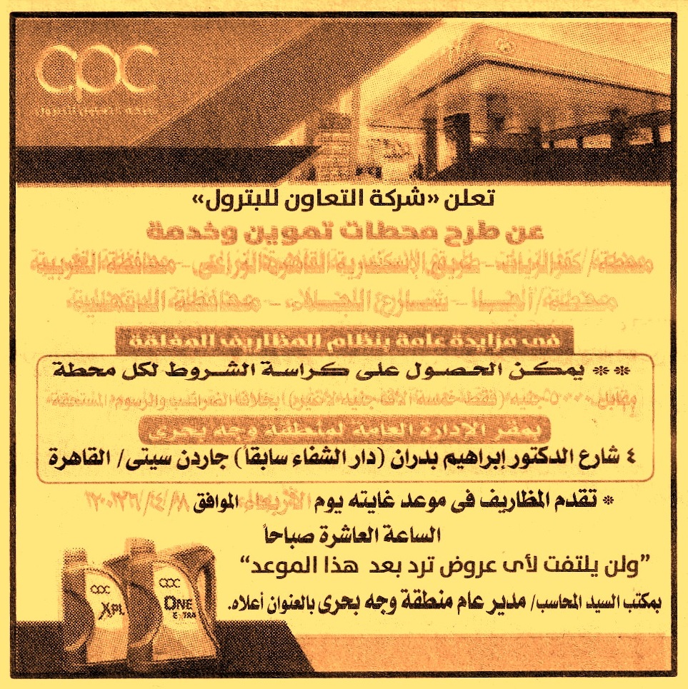 (أخر موعد لتقديم العطاءات يوم 8/4/2026 الساعة 10 ص)