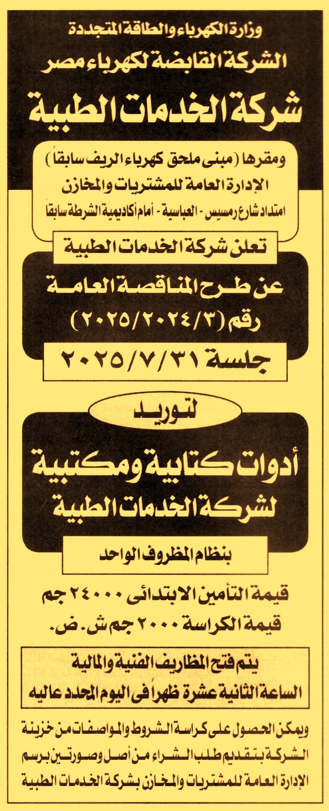 مناقصة عامة رقم 3/2024/2025 لعملية