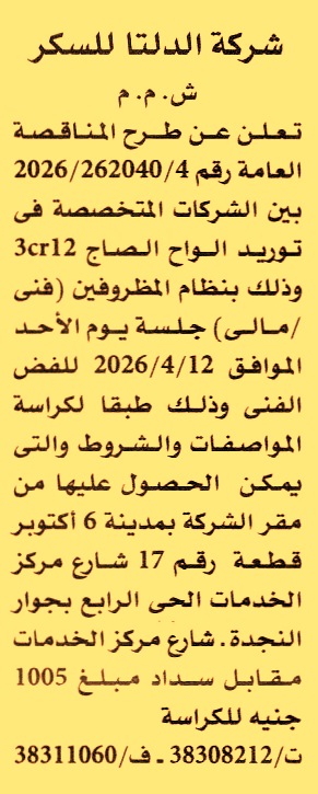 مناقصة عامة رقم 4/262040/2026 لعملية