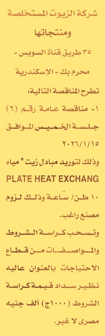 توريد مبادل زيت * مياه Plate Heat Exchange 10 طن/ ساعة