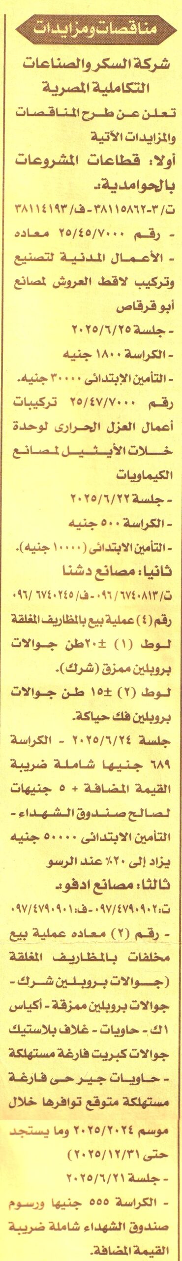 HOT information مناقصة عامة رقم 7000/45/25 لعملية اولا:قطاعات المشروعات بالحوامدية الاعمال المدنية لتصنيع وتركيب لاقط العروش لمصانع ابوقرقاص عن جريدة الاخبار Post navigation الوحدة المحلية لمركز مدينة دسوق جامعة اسيوط الاهلية