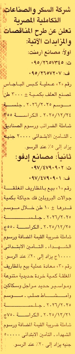 كبس الباجاس لمصنع العلب بكمية ±3000 طن موسم 2025/2026
