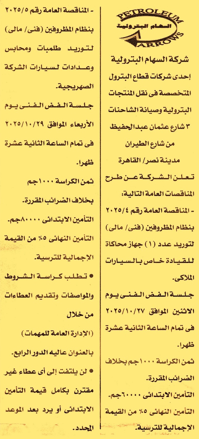 HOT information مناقصة عامة رقم 4/2025 لعملية توريد عدد 1 جهاز محاكات للقيادة خاص بالسيارات الملاكي عن جريدة الأخبار Post navigation شركة مصر العامرية للغزل والنسيج شركة مياه الشرب والصرف الصحي بالجيزة